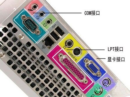 COM接口(深蓝色):平均分布于并行接口下方,该接口有9个针脚,也称之为串口1和串口2。可连接游戏手柄或手写板等配件。