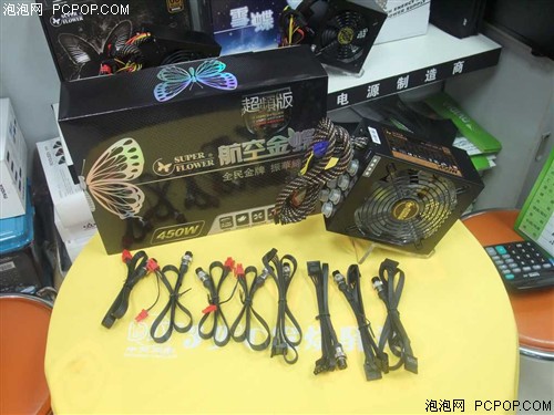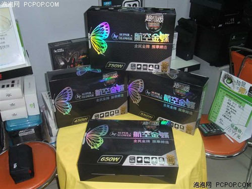 振华的航空金蝶系列电源,是在之前推出的冰山金蝶基础上进行了改进而生的,这个系列电源均为超频版,也就是说电源可以以付出一定转换效率的前提下增加输出功率,适合玩超频的玩家使用。另外、接口和风扇比原有金蝶都有一定改观。