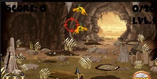 恐龙猎手是一款以侏罗纪为背景的射击游戏,玩家要做的即时在山洞之中,对着进进出出的飞龙发起猛烈的射击,尽可能多的将恐龙全部射杀,成为一名杀龙的勇士。