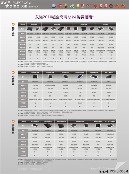 更完美的高清体验,更精彩的影音享受,更具性价比的超全高清MP4!艾诺5寸高清MP4精品V5000HDG,499元/8G,精彩上市!