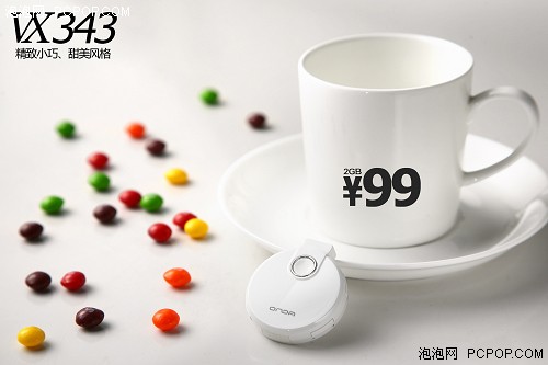 与外观精致的VX313一样,昂达新品VX343精致的机身也是源自国际知名设计公司与顶级模具工厂的倾心打造,细节之处更是体现出不俗的精湛做工。仅38×38毫米的精致机身,薄至10毫米,加上诱惑力十足的圆形设计甜美至极。仅11克的超轻重量,可轻松随意佩戴,配以炫目十足的链带,可以将这款MP3挂至胸前,成为顶尖时尚最佳的点缀流行饰品。支持长达10小时的音乐播放。同时,2GB的主流容量给你充足的空间存放自己喜爱的音乐,以标准MP3歌曲(约4分钟长度,128Kbps MP3编码歌曲计算)为基础,可以存储高达500首高品质歌曲,轻松的将海量音乐随身携带。