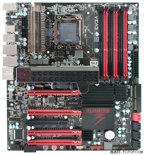Classified是EVGA高端产品的惯用型号,X58 Classified3主板采用X58芯片组,支持LGA1366处理器,主板采用了10相CPU供电,充分保证了高端处理器安全稳定的运行。另外这款主板并没有加装额外的nForce200芯片,4条PCI-E 2.0 X16接口全部直接从X58北桥引出。