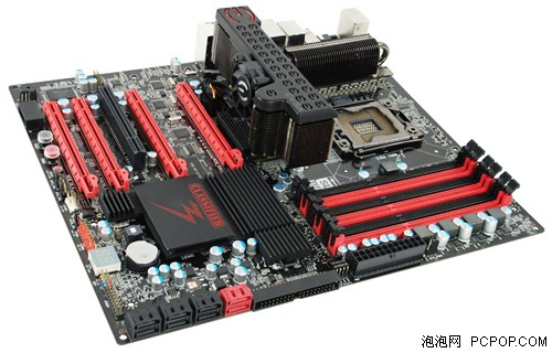 主板沿用了EVGA风格的北桥散热器,配备了一颗风扇保证北桥工作的稳定性,完全可以保证极限超频的需要。