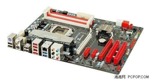 映泰TP67XE侧面图我们可以看到背部接口也很丰富:PS/2、六个USB 2.0、两个USB 3.0、光纤和同轴S/PDIF、eSATA 、IEEE1394a。