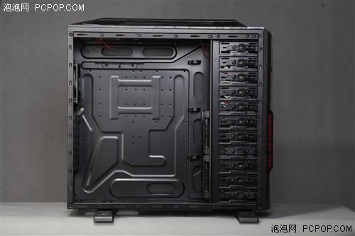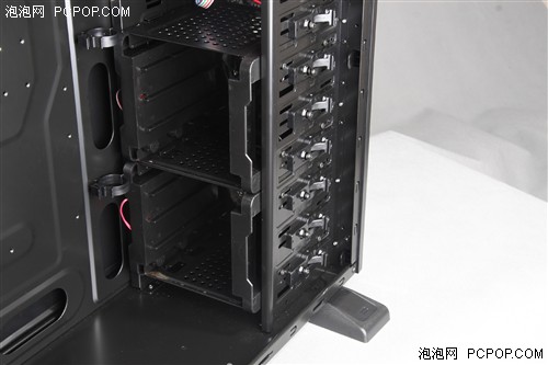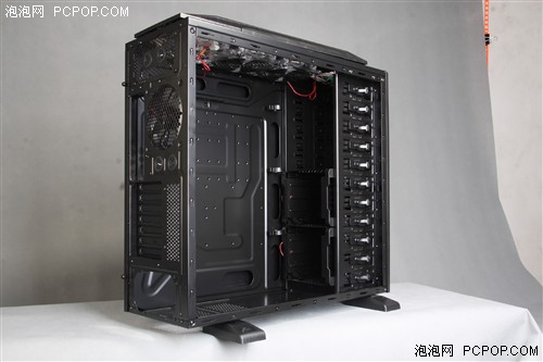 机箱支持E-ATX/ATX/M-ATX(最大主板12*13英寸)结构主板,钢板厚度达到了1mm,机箱净重13.5kg非常厚实。外包装(W×H×D)624×288×670mm、机箱尺寸(W×H×D)490×205×461mm。支持双电源有多达八个硬盘仓位(可以自己添加扩展)。还有四个水冷管通过孔,方便高端DIY玩家改造组装散热系统。总之现在市场上高端机箱所应当拥有的设计它全都有了,至于产品究竟如何不久之后就见分晓。