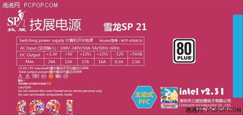 近日,机电厂商技展有两款电源通过了80PLUS认证,刚刚通过白牌认证的这款雪龙SP21电源十分接近铜牌标准,做工出色。