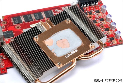 散热方面,耕昇GTX460关羽版显卡散热系统设计上与公版散热原理上一致,但其散热风扇却选用了直径更大的4PIN PWM智能双滚珠风扇。而铜底和双热管的设计能快速把GPU的热量迅速带到散热鳍片上,见过导风罩的作用,由风扇的风流向左右两侧吹动,快速排出散热鳍片的热量。