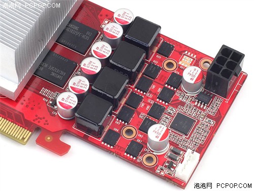 看看铭瑄GTS450 Mini的其它细节,做工用料丝毫不比市面上的全高GTS450差,甚至可以说更强。显卡配备完整的3+1相供电,清一色使用富士通高品质固态电容,而且每相供电配备3颗安森美低阻抗八爪鱼mos管,确保显卡纯净充足的电力供应。垂直设计的6Pin电源接口能够保证显卡与小机箱良好的兼容性,方便机箱电源走线。