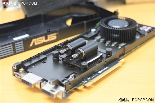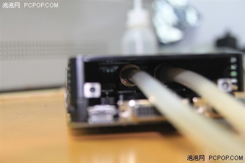 因为要保留原有散热器,为了让水冷管可以通过,屠龙刀拆下了显卡的PCI挡板。