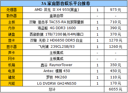 既然是一套影音娱乐平台,显卡自然成为重中之重。这里我们选择了双敏显卡旗下这款HD6850白金版,作为千元市场的新兵,HD6850拥有很出色的性能表现。这款产品采用非公版打造配备了独创超耐久2X散热技术,目前的售价为1299元,也非常值得中高端玩家选择。