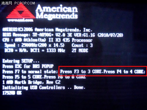 AMD早在8系列芯片组发布时已经宣布8系列芯片不支持ACC(高级时钟校准功能),但这不意味着开核就停止。而市面上的芯片厂商各出奇招,让开核成就可能。目前开核的方式可以分为软件和硬件,软件端就是通过BIOS的优化和修改,实现开核功能。例如梅捷这款SY-890G+节能版通过F3和F4可以实现一键开启三核和四核功能。