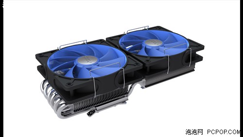 这颗显卡散热器与之前介绍过的神翼V6000有一点相似之处,都需要双风扇才能覆盖,不过这款产品使用鳍片阵列设计。