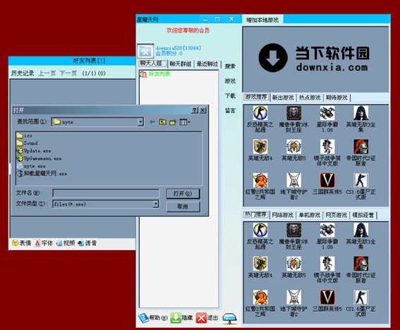软件名称:星耀天网 V1.7 官方免费版_通讯聊天工具 软件大小:2468KB 软件语言:简体中文 软件类别:国产软件/免费软件/聊天工具 运行环境:Win2003, WinXP, Win2000, Vista, Win7 软件简介: 星耀天网是一款通讯聊天工具。 聊天群,表情,视频,语音,文件传送等众多实用功能。还包括了游戏方面的游戏菜单,游戏资料,游戏下载,游戏物品交易等。 网络聊天软件|星耀天网通讯聊天工具 V1.7 官方安装版 下载 网络聊天软件|星耀天网通讯聊天工具 V1.7 官方安装版 迅雷下载 下载页面:http://www.downxia.com/downinfo/22621.html