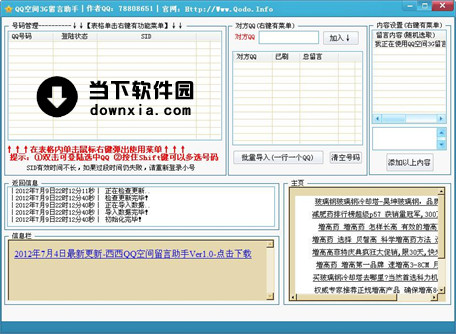 软件名称:qq空间3g留言助手|QQ空间3G留言助手 V1.0 绿色版 软件大小:558KB 软件语言:简体中文 软件类别:国产软件/免费软件/QQ 专区 运行环境:Win2003, WinXP, Win2000, Vista, Win7 软件简介: QQ空间3G留言助手是一款模拟手机批量登陆来QQ大号空间留言3gqq空间留言辅助工具。最新可用,打一个验证码发送一条,稳定高效,是提升空间留言的好帮手! qq空间3g留言助手|QQ空间3G留言助手 V1.0 绿色版 下载 qq空间3g留言助手|QQ空间3G留言助手 V1.0 绿色版 迅雷下载 下载页面:http://www.downxia.com/downinfo/23293.html