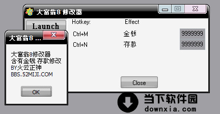 软件名称:大富翁8内存修改器|大富翁8金钱修改器 V1.0 单文件版 软件大小:276KB 软件语言:简体中文 软件类别:国产软件/免费软件/游戏工具 运行环境:Win2003, WinXP, Win2000, Vista, Win7 软件简介: 大富翁8金钱修改器是一款可以自由修改存款和金钱数量的大富翁8内存修改器。大富翁8金钱修改器主要功能是ctrl+N 存款数量修改、ctrl+m 金钱数量修改无限。 大富翁8内存修改器|大富翁8金钱修改器 V1.0 单文件版 下载 大富翁8内存修改器|大富翁8金钱修改器 V1.0 单文件版 迅雷下载 下载页面:http://www.downxia.com/downinfo/23662.html