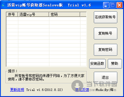 软件名称:迅雷vip获取器|迅雷vip账号获取器 V1.6 绿色版 软件大小:1597KB 软件语言:简体中文 软件类别:国产软件/免费软件/下载工具 运行环境:Win2003, WinXP, Win2000, Vista, Win7 软件简介: 我们经常在网络上下载资源,但是很多情况下我们下载的东西过大或者过多,我们非常需要靠迅雷的离线下载来下载网络资源,但迅雷的“离线下载”仅对迅雷会员开放。 迅雷vip获取器|迅雷vip账号获取器 V1.6 绿色版 下载 迅雷vip获取器|迅雷vip账号获取器 V1.6 绿色版 迅雷下载 下载页面:http://www.downxia.com/downinfo/24724.html