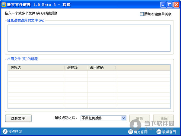 软件名称:解除文件占用软件|魔方文件解锁 1.0.3 绿色免费版 软件大小:544KB 软件语言:简体中文 软件类别:国产软件/免费软件/文件管理 运行环境:Win2003, WinXP, Win2000, Vista, Win7 软件简介: 魔方文件解锁是一款可以帮助用户解锁其他软件正在使用的目标文件的解除文件占用软件。用户可以通过该软件解除被其他程序或者进程占用的文件,从而进行下一步的修改或者删除。 解除文件占用软件|魔方文件解锁 1.0.3 绿色免费版 下载 解除文件占用软件|魔方文件解锁 1.0.3 绿色免费版 迅雷下载 下载页面:http://www.downxia.com/downinfo/25660.html