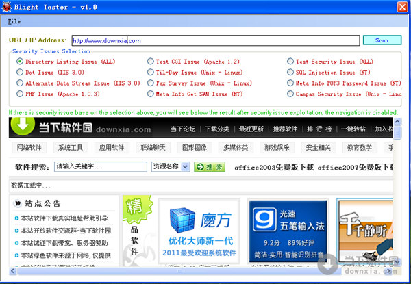 软件名称:Blight Tester(网络安全测试工具) V1.0 免费版 软件大小:622KB 软件语言:英文 软件类别:国外软件/免费软件/网络监测 运行环境:Win2003, WinXP, Win2000, Vista, Win7 软件简介: Blight Tester 是一款非常实用的可以帮助用户检查计算机网络的各种类型的安全问题的网络安全测试工具,它能非常快速地方便地检查、诊断网络上各种安全问题 Blight Tester(网络安全测试工具) V1.0 免费版 下载 Blight Tester(网络安全测试工具) V1.0 免费版 迅雷下载 下载页面:http://www.downxia.com/downinfo/26590.html