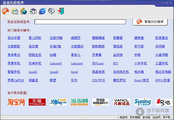 软件名称:网购比价软件|省省比价软件 V1.0 绿色免费版 软件大小:1186KB 软件语言:简体中文 软件类别:国产软件/免费软件/杂类工具 运行环境:Win2003, WinXP, Win2000, Vista, Win7 软件简介: 省省比价软件是由省省比价网推出的一款能应用在电脑桌面的网购比价软件,它能做到对当下所有的主流网购商城进行商品的各种横向比较,它可以实时抓取数据,然后对商品的价格 网购比价软件|省省比价软件 V1.0 绿色免费版 下载 网购比价软件|省省比价软件 V1.0 绿色免费版 迅雷下载 下载页面:http://www.downxia.com/downinfo/26594.html