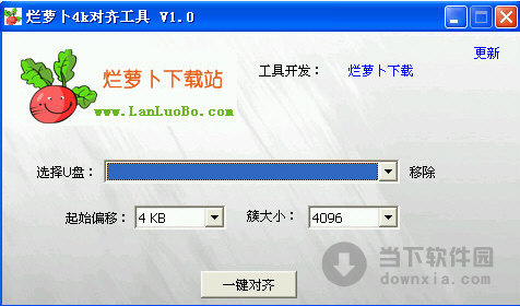 软件名称:4k对齐的软件|烂萝卜4k对齐工具 V1.0 绿色免费版 软件大小:753KB 软件语言:简体中文 软件类别:国产软件/免费软件/U盘工具 运行环境:Win2003, WinXP, Win2000, Vista, Win7 软件简介: 烂萝卜4k对齐工具是一款针对U盘设备一键扇区对齐的软件,该4k对齐的软件支持清除目前市面上制作的HDD/ZIP、UD分区。如果在吴操作下将U盘快速分区后,导致U盘不能使用的 4k对齐的软件|烂萝卜4k对齐工具 V1.0 绿色免费版 下载 4k对齐的软件|烂萝卜4k对齐工具 V1.0 绿色免费版 迅雷下载 下载页面:http://www.downxia.com/downinfo/26589.html