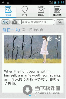 软件名称:有道词典安卓版|有道手机词典 for android V3.4.0 安卓版 软件大小:10277KB 软件语言:简体中文 软件类别:手机软件/免费软件/Android 运行环境:Android 软件简介: 有道手机词典内置一个小巧的本地词库,提供数以万计的常用中英文本地词汇,外加智能输入提示,满足您基本的查词需要。提供网络释义、全文翻译、单词本以及网络发音功能 有道词典安卓版|有道手机词典 for android V3.4.0 安卓版 下载 有道词典安卓版|有道手机词典 for android V3.4.0 安卓版 迅雷下载 下载页面:http://www.downxia.com/downinfo/15567.html