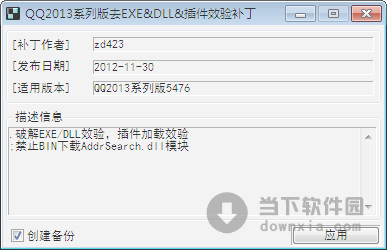 软件名称:QQ2013系列版 去DLL插件效验补丁 绿色免费版 软件大小:20KB 软件语言:简体中文 软件类别:国产软件/免费软件/QQ 专区 运行环境:Win2003, WinXP, Win2000, Vista, Win7 软件简介: QQ2013系列版去DLL插件效验补丁是一款设计及其简单,但功能非常使用的工具,该工具可以去DLL插件效验,破 解了插件加载效验等,使用操作都很简便,只需轻点应用即可 QQ2013系列版 去DLL插件效验补丁 绿色免费版 下载 QQ2013系列版 去DLL插件效验补丁 绿色免费版 迅雷下载 下载页面:http://www.downxia.com/downinfo/28691.html