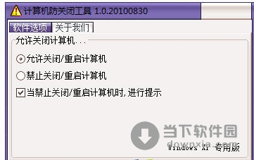 软件名称:计算机防关闭工具|计算机防关闭工具 1.0 绿色免费版 软件大小:344KB 软件语言:简体中文 软件类别:国产软件/免费软件/系统安全 运行环境:Win2003, WinXP, Win2000 软件简介: 计算机防关闭工具是一款让系统中的“关机”“重启”功能失效的小软件,可以防止未经允许软关闭计算机或重启计算机 计算机防关闭工具|计算机防关闭工具 1.0 绿色免费版 下载 计算机防关闭工具|计算机防关闭工具 1.0 绿色免费版 迅雷下载 下载页面:http://www.downxia.com/downinfo/10596.html