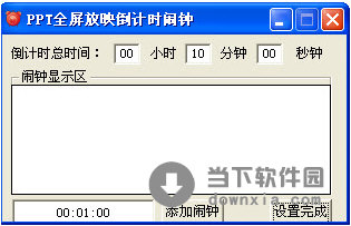 软件名称:ppt全屏放映倒计时闹钟|ppt全屏放映倒计时闹钟 V1.0 绿色免费版 软件大小:309KB 软件语言:简体中文 软件类别:国产软件/免费软件/杂类工具 运行环境:Win2003, WinXP, Win2000, Vista, Win7 软件简介: ppt全屏放映倒计时闹钟是一款为ppt倒计时设计的工具。该软件可以自动进入倒计时,退出全屏倒计时暂停,帮助用户进行ppt放映计时,喜欢的话赶紧下载吧。 ppt全屏放映倒计时闹钟|ppt全屏放映倒计时闹钟 V1.0 绿色免费版 下载 ppt全屏放映倒计时闹钟|ppt全屏放映倒计时闹钟 V1.0 绿色免费版 迅雷下载 下载页面:http://www.downxia.com/downinfo/30976.html