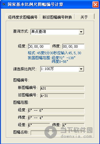 软件名称:国家基本比例尺图幅编号计算|国家基本比例尺图幅编号计算 V1.0 绿色免费版 软件大小:339KB 软件语言:简体中文 软件类别:国产软件/免费软件/计算器类 运行环境:Win2003, WinXP, Win2000, Vista, Win7 软件简介: 国家基本比例尺图幅编号计算是一款参考B/T13989-92国家基本比例尺地形图分幅和编号及旧地形图分幅和编号规则编制设计的软件,是方便用户计算比例尺图幅编号的好工具。 国家基本比例尺图幅编号计算|国家基本比例尺图幅编号计算 V1.0 绿色免费版 下载 国家基本比例尺图幅编号计算|国家基本比例尺图幅编号计算 V1.0 绿色免费版 迅雷下载 下载页面:http://www.downxia.com/downinfo/30985.html