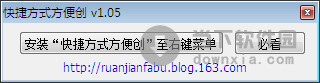 软件名称:快捷方式方便创|快捷方式方便创 V1.05 绿色免费版 软件大小:216KB 软件语言:简体中文 软件类别:国产软件/免费软件/系统设置 运行环境:Win2003, WinXP, Win2000 软件简介: 在右键菜单安装“快捷方式方便创”项后,右键单击某文件,单击弹出菜单中“快捷方式方便创”项可方便地建立此文件的快捷方式到用户指定地点。 快捷方式方便创|快捷方式方便创 V1.05 绿色免费版 下载 快捷方式方便创|快捷方式方便创 V1.05 绿色免费版 迅雷下载 下载页面:http://www.downxia.com/downinfo/8856.html