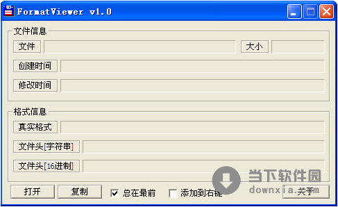 软件名称:FormatViewer(文件格式查看工具) V1.0 绿色免费版 软件大小:13KB 软件语言:简体中文 软件类别:国产软件/免费软件/文件管理 运行环境:Win2003, WinXP, Win2000, Vista, Win7 软件简介: FormatViewer是一款方便易用的文件格式查看工具。在一般情况下文件扩展名就表示文件的类型,这款软件就刚好可以来查看文件格式。 FormatViewer(文件格式查看工具) V1.0 绿色免费版 下载 FormatViewer(文件格式查看工具) V1.0 绿色免费版 迅雷下载 下载页面:http://www.downxia.com/downinfo/31007.html