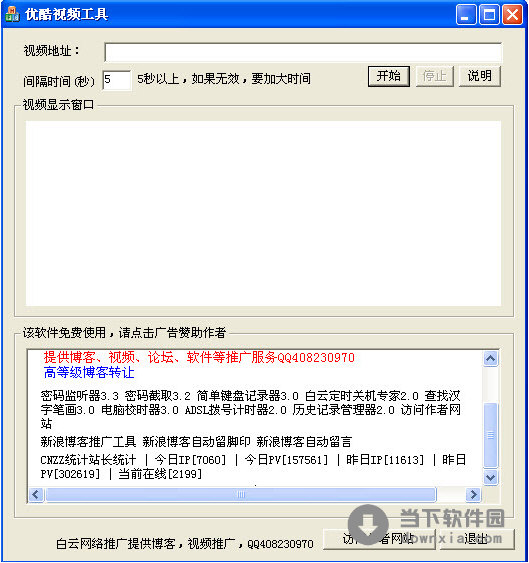 软件名称:优酷视频推 广工具|优酷视频工具 V1.0 绿色免费版 软件大小:188KB 软件语言:简体中文 软件类别:国产软件/免费软件/浏览辅助 运行环境:Win2003, WinXP, Win2000, Vista, Win7 软件简介: 优酷视频工具是一款方便易用的优酷刷顶工具。在目前只是实现了简单的刷视频的“顶”功能,优酷视频推 广工具设置的时间间隔在5秒以上。 优酷视频推 广工具|优酷视频工具 V1.0 绿色免费版 下载 优酷视频推 广工具|优酷视频工具 V1.0 绿色免费版 迅雷下载 下载页面:http://www.downxia.com/downinfo/31017.html