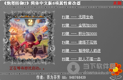 软件名称:炮塔防御2修改器|炮塔防御2六项属性修改器 绿色免费版 软件大小:375KB 软件语言:简体中文 软件类别:游戏视频/免费软件/游戏工具 运行环境:Win2003, WinXP, Win2000, Vista, Win7 软件简介: 炮塔防御2六项属性修改器是一款为炮塔防御2游戏精心打造的辅助工具。《炮塔防御2》是一款策略类游戏,随着游戏难度的增加,每次出现的敌人也会逐渐增加。 炮塔防御2修改器|炮塔防御2六项属性修改器 绿色免费版 下载 炮塔防御2修改器|炮塔防御2六项属性修改器 绿色免费版 迅雷下载 下载页面:http://www.downxia.com/downinfo/31107.html