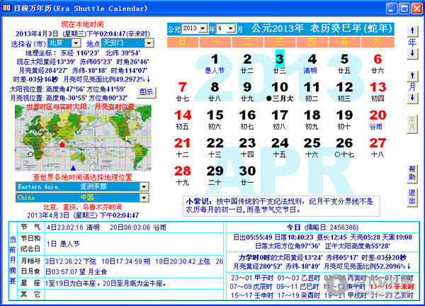 日梭万年历是世界上第一款采用现代高精度天文历算算法制作的公历、农历、伊 斯 兰历(回历)三历对照、信息丰富、年代特长的多功能万年历。