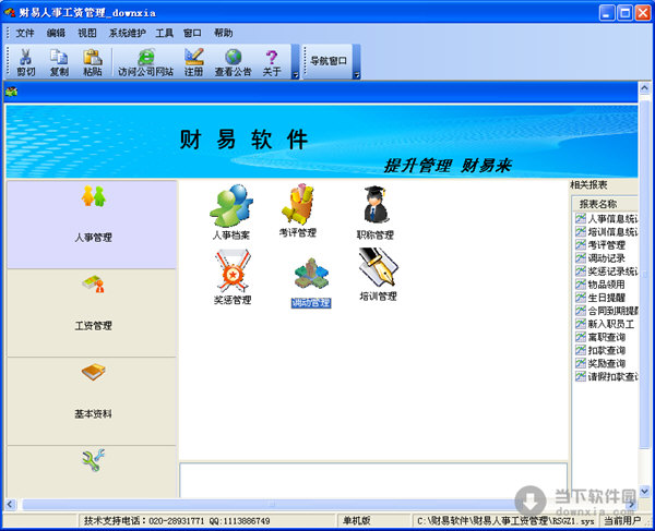 软件名称:财易人事工资管理软件|财易人事工资管理软件 V3.3.0 官方版 软件大小:10359KB 软件语言:简体中文 软件类别:国产软件/免费软件/行业软件 运行环境:Win2003, WinXP, Win2000, Vista, Win7 软件简介: 财易人事工资管理软件是一款简单好用的人事工资管理系统,它有机地将人事管理和工资管理两个模块完美结合在一起,以导航式界面展现在用户面前 财易人事工资管理软件|财易人事工资管理软件 V3.3.0 官方版 下载 财易人事工资管理软件|财易人事工资管理软件 V3.3.0 官方版 迅雷下载 下载页面:http://www.downxia.com/downinfo/35894.html