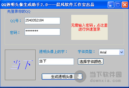软件名称:qq透明头像生成器|QQ透明头像生成助手 V3.2 绿色版 软件大小:853KB 软件语言:简体中文 软件类别:国产软件/免费软件/QQ 专区 运行环境:Win2003, WinXP, Win2000, Vista, Win7 软件简介: QQ透明头像生成助手是一款很好用的qq透明头像生成器。传统的方法非常复杂普通用户难以操作,而它那只需要轻轻鼠标点两下按钮就生成好了。 qq透明头像生成器|QQ透明头像生成助手 V3.2 绿色版 下载 qq透明头像生成器|QQ透明头像生成助手 V3.2 绿色版 迅雷下载 下载页面:http://www.downxia.com/downinfo/24290.html