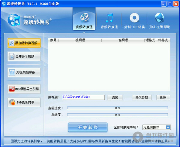软件名称:超级转换秀|超级转换秀 V42.8 build 9430 白金豪华特别版 软件大小:37837KB 软件语言:简体中文 软件类别:国产软件/免费软件/视频转换 运行环境:Win2003, WinXP, Win2000, Vista, Win7 软件简介: 超级转换秀是国内首个集成CD抓规、音频转换、视频转换、音视频混合转换、音视频切割/驳接转换于一体的优秀影音转换工具。 超级转换秀|超级转换秀 白金版 V8.0 破 解版 下载 超级转换秀|超级转换秀 白金版 V8.0 破 解版 迅雷下载 下载页面:http://www.downxia.com/downinfo/993.html