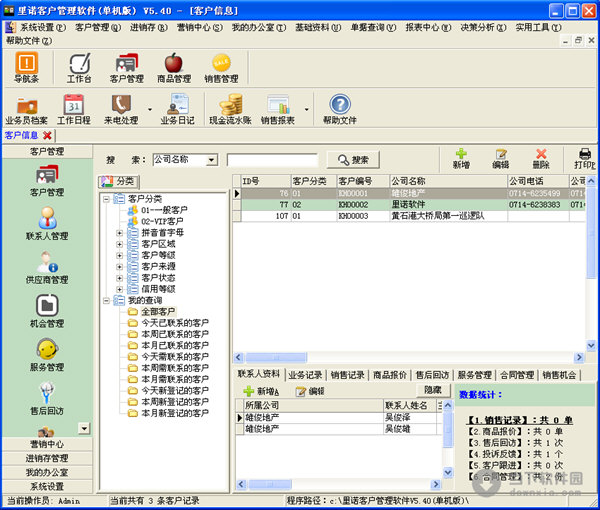 软件名称:里诺客户管理软件|里诺客户管理软件 V5.40 官方最新版 软件大小:6408KB 软件语言:简体中文 软件类别:国产软件/免费软件/行业软件 运行环境:Win2003, WinXP, Win2000, Vista, Win7 软件简介: 里诺客户管理软件是一款功能丰富、操作简单的客户关系管理软件,它集客户档案、销售记录、业务往来等功能于一身,可以帮助用户轻松管理客户关系,发掘潜在客户 里诺客户管理软件|里诺客户管理软件 (单机版) V5.40 官方最新版 下载 里诺客户管理软件|里诺客户管理软件 (单机版) V5.40 官方最新版 迅雷下载 下载页面:http://www.downxia.com/downinfo/37498.html