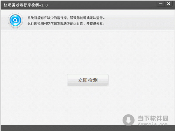 软件名称:快吧游戏运行库检测|快吧游戏运行库检测 1.0 绿色免费版 软件大小:956KB 软件语言:简体中文 软件类别:国产软件/免费软件/系统其它 运行环境:Win2003, WinXP, Win2000, Vista, Win7 软件简介: 快吧游戏运行库检测是种类最全、体积最小、修复最快的游戏运行库检测与修复软件,提供32种运行库和系统组件的检测与修复,支持32位与64位系统 快吧游戏运行库检测|快吧游戏运行库检测 1.0 绿色免费版 下载 快吧游戏运行库检测|快吧游戏运行库检测 1.0 绿色免费版 迅雷下载 下载页面:http://www.downxia.com/downinfo/37508.html