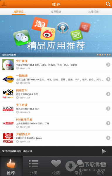 软件名称:优听android版|优听 for android V1.3.1.2914 安卓版 软件大小:8307KB 软件语言:简体中文 软件类别:手机软件/免费软件/Android 运行环境:Android 软件简介: 优听是一款非常好用的网络电台收音机应用,它集合了国内外众多的电台频道,中央人民广播电台(CNR)、中国国际广播电台(CRI),所有地方频道,北京、天津、上海、港澳台等 优听android版|优听 for android V1.3.1.2914 安卓版 下载 优听android版|优听 for android V1.3.1.2914 安卓版 迅雷下载 下载页面:http://www.downxia.com/downinfo/34142.html