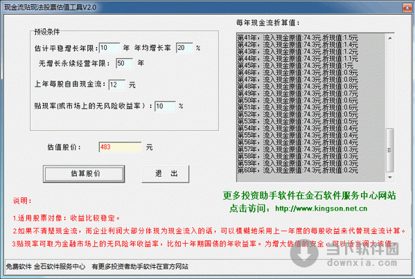 软件名称:现金流贴现法股票估值工具 2.0 绿色免费版 软件大小:175KB 软件语言:简体中文 软件类别:国产软件/免费软件/行业软件 运行环境:Win2003, WinXP, Win2000 软件简介: 现金流贴现法股票估值工具为完全免费的绿色免安装软件。它通过未来几年现金流贴现法估算股票的合理价格范围。 现金流贴现法股票估值工具 2.0 绿色免费版 下载 现金流贴现法股票估值工具 2.0 绿色免费版 迅雷下载 下载页面:http://www.downxia.com/downinfo/8519.html
