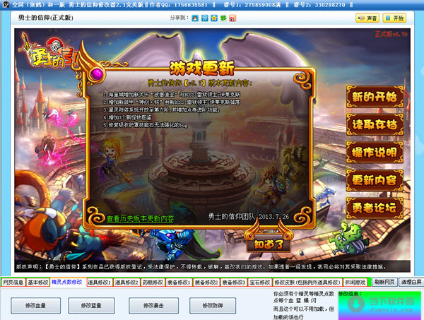软件名称:勇士的信仰最新修改器|空闲勇士的信仰修改器 V2.1 绿色免费版 软件大小:2000KB 软件语言:简体中文 软件类别:游戏视频/免费软件/游戏工具 运行环境:Win2003, WinXP, Win2000, Vista, Win7 软件简介: 空闲勇士的信仰修改器是专为《勇士的信仰》游戏所开发的多功能辅助. 勇士的信仰最新修改器|空闲勇士的信仰修改器 V2.1 绿色免费版 下载 勇士的信仰最新修改器|空闲勇士的信仰修改器 V2.1 绿色免费版 迅雷下载 下载页面:http://www.downxia.com/downinfo/38974.html