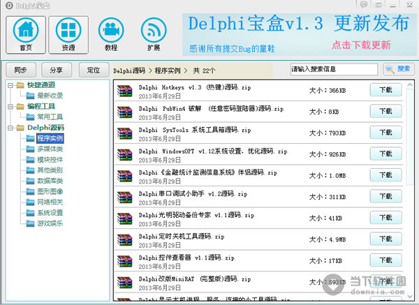 软件名称:Delphi宝盒|Delphi宝盒 V1.5 绿色版 软件大小:1457KB 软件语言:简体中文 软件类别:国产软件/免费软件/编程工具 运行环境:Win2003, WinXP, Win2000, Vista, Win7 软件简介: Delphi宝盒是一款为Delphi初学者打造的实用工具,这款工具中含有大量的教学视频、各种程序源代码以及一些实用的工具,能够帮助初学者更好的学习Delphi。 Delphi宝盒|Delphi宝盒 V1.5 绿色版 下载 Delphi宝盒|Delphi宝盒 V1.5 绿色版 迅雷下载 下载页面:http://www.downxia.com/downinfo/38811.html