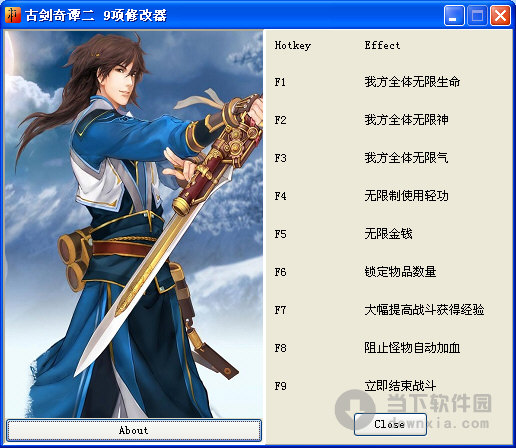 软件名称:古剑奇谭2九项修改器|古剑奇谭2九项修改器 +9 绿色免费版 软件大小:3553KB 软件语言:简体中文 软件类别:游戏视频/免费软件/游戏工具 运行环境:Win2003, WinXP, Win2000, Vista, Win7 软件简介: 古剑奇谭2九项修改器是一款同名下的游戏辅助工具。古剑奇谭2是一款角色扮演类游戏,玩家可以通过修改器来得到无限生命,气,神,让你更好地来畅游游戏带来的欢乐。 古剑奇谭2九项修改器|古剑奇谭2九项修改器 +9 绿色免费版 下载 古剑奇谭2九项修改器|古剑奇谭2九项修改器 +9 绿色免费版 迅雷下载 下载页面:http://www.downxia.com/downinfo/39134.html