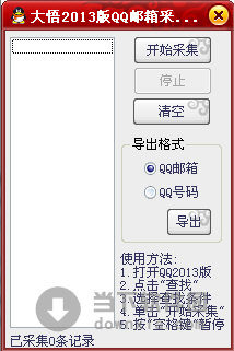 软件名称:qq邮箱采集工具|大悟2013版QQ邮箱采集器 V2.9 绿色免费版 软件大小:1407KB 软件语言:简体中文 软件类别:国产软件/免费软件/QQ 专区 运行环境:Win2003, WinXP, Win2000, Vista, Win7 软件简介: 大悟2013版QQ邮箱采集器是一款能够帮助用户快速采集QQ邮箱或QQ号码的工具. qq邮箱采集工具|大悟2013版QQ邮箱采集器 V2.9 绿色免费版 下载 qq邮箱采集工具|大悟2013版QQ邮箱采集器 V2.9 绿色免费版 迅雷下载 下载页面:http://www.downxia.com/downinfo/39137.html