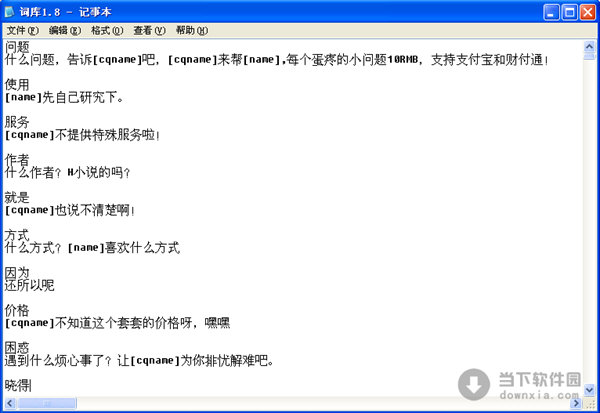 软件名称:酷q机器人词库|酷q词库下载 大全完整版 软件大小:2615KB 软件语言:简体中文 软件类别:国产软件/免费软件/QQ 专区 运行环境:Win2003, WinXP, Win2000, Vista, Win7 软件简介: 酷q机器人词库是一款可以帮助用户丰富酷Q机器人语言词库的语言词库. 酷q机器人词库|酷q词库下载 大全完整版 下载 酷q机器人词库|酷q词库下载 大全完整版 迅雷下载 下载页面:http://www.downxia.com/downinfo/39198.html