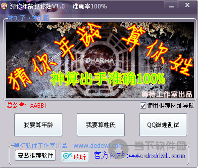 软件名称:猜你年龄算你姓|猜你年龄算你姓 V1.0 绿色版 软件大小:2192KB 软件语言:简体中文 软件类别:国产软件/免费软件/杂类工具 运行环境:Win2003, WinXP, Win2000, Vista, Win7 软件简介: 猜你年龄算你姓是一款非常有趣的软件,这款软件能够根据算法算出您的年龄和姓氏。 猜你年龄算你姓|猜你年龄算你姓 V1.0 绿色版 下载 猜你年龄算你姓|猜你年龄算你姓 V1.0 绿色版 迅雷下载 下载页面:http://www.downxia.com/downinfo/39205.html
