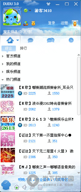 软件名称:嘟嘟语音聊天|嘟嘟语音(DUDU) V3.1.4 官方免费版 软件大小:17927KB 软件语言:简体中文 软件类别:国产软件/免费软件/聊天工具 运行环境:Win2003, WinXP, Win2000, Vista, Win7 软件简介: 嘟嘟语音(DUDU)是一款专门针对网络游戏玩家设计,结合即时聊天、游戏语音等功能的语音聊天软件,功能设置更加贴近游戏用户需求。 嘟嘟语音聊天|嘟嘟语音(DUDU) V3.1.1 绿色免费版 下载 嘟嘟语音聊天|嘟嘟语音(DUDU) V3.1.1 绿色免费版 迅雷下载 下载页面:http://www.downxia.com/downinfo/10114.html
