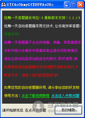 软件名称:qq炫舞自动答题器|炫舞一天答题器 V3.2.2 最新版 软件大小:2092KB 软件语言:简体中文 软件类别:游戏视频/免费软件/游戏工具 运行环境:Win2003, WinXP, Win2000, Vista, Win7 软件简介: 炫舞一天答题器是一款为QQ炫舞每日学堂专门打造的辅助工具,使用这款qq炫舞自动答题器可以自动学习、自动答题,大大的节省了花费在学堂上面的时间。 qq炫舞自动答题器|炫舞一天答题器 V3.2.2 最新版 下载 qq炫舞自动答题器|炫舞一天答题器 V3.2.2 最新版 迅雷下载 下载页面:http://www.downxia.com/downinfo/38822.html