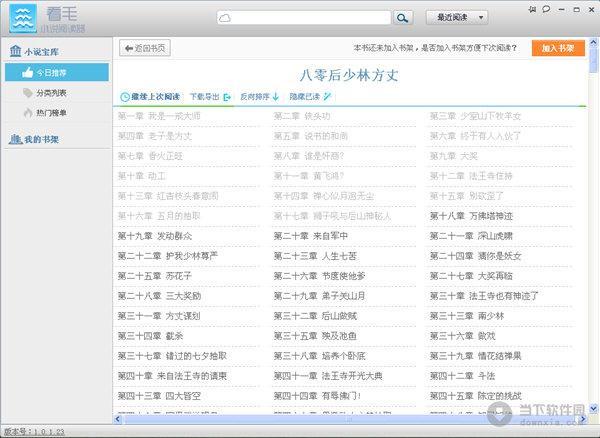 软件名称:看毛小说阅读器|看毛小说阅读器 V1.0.1.23 官方版 软件大小:1367KB 软件语言:简体中文 软件类别:国产软件/免费软件/电子阅读 运行环境:Win2003, WinXP, Win2000, Vista, Win7 软件简介: 看毛小说阅读器是一款为喜欢看小说的用户专门打造的阅读工具,使用这款工具阅读小说与网站阅读小说想比较具有无广 告、内容可随时保存、错别字更少的优点。 看毛小说阅读器|看毛小说阅读器 V1.0.1.23 官方版 下载 看毛小说阅读器|看毛小说阅读器 V1.0.1.23 官方版 迅雷下载 下载页面:http://www.downxia.com/downinfo/38824.html